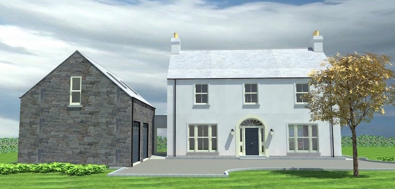 This project was a new build two storey dwelling with attached garage for a newly married couple. The desire was for a Georgian style home and the brief was worked through with the client. A 3D model and walk through were provided to help the client envisage how it was going to look and each space was carefully thought out to take advantage of the fantastic views the dwelling enjoyed from its prominent location. We were conscious that with any good period property it is important to get the proportions and detailing correct.