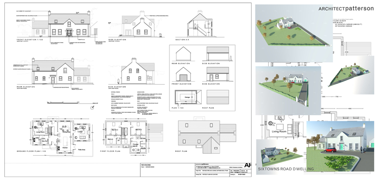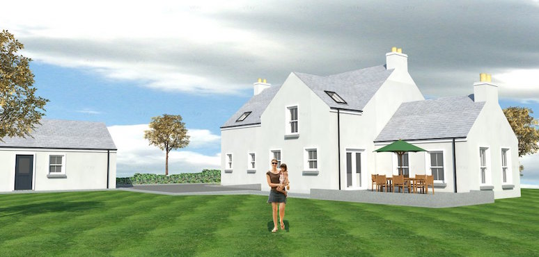 This project was a new build 1 & ½ storey dwelling for a newly married couple. Their desire was for a more traditional style and through our initial discussions we thought it appropriate that it could take took influence from the local vernacular dwellings in the surrounding area. The brief was worked up with the client and a 3D model was prepared to allow them to easily see how it would look within the context of the site. The site itself was located within an area of outstanding natural beauty and therefore the dwelling had to be sympathetically designed so as to nestle within the site and not be over prominent.